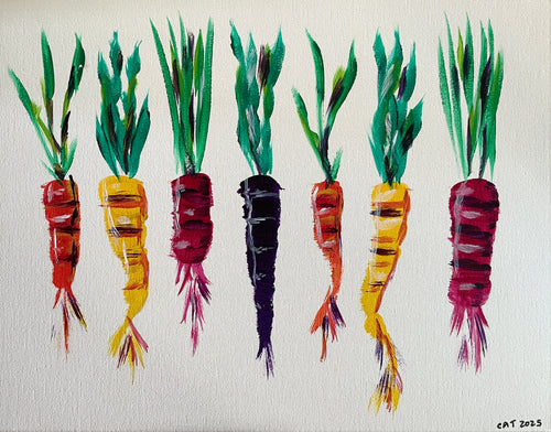 Beautiful original art, sizes ranging from 12x12 to 24x30. Choose from stretched canvas made with light weight cotton duck or canvas panel. Styles ranging from fruit and veggies to fun animal astronauts!