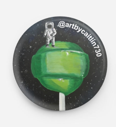 Choose from a variety of matte and holographic stickers, size ranging from 3-4 inches in height. These stickers are sure to last! Durable, weather resistant vinyl stickers, you can even put them in the dishwasher! Tag your stickers anywhere you'd like, on notebooks, phone cases, laptops, water bottles, helmets, the possibilities are endless! Also choose from a variety of classic pin-back buttons, sizes ranging from 1.25 to 1.5 in diameter.